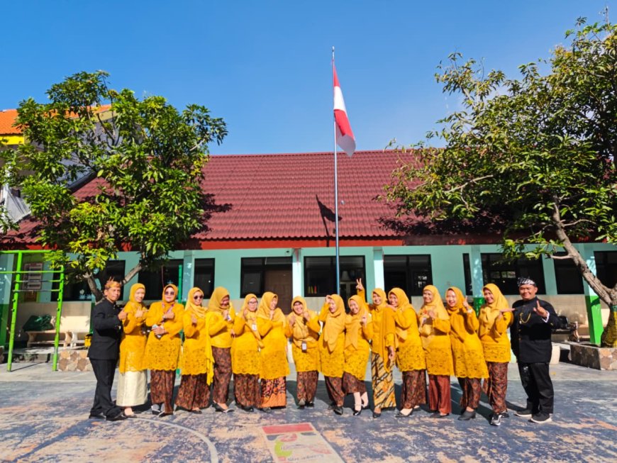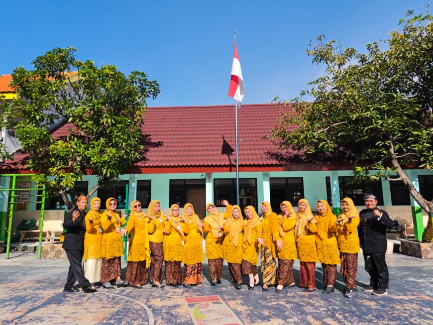 BAPAK DAN IBU GURU SD NEGERI CANDI KENAKAN PAKAIAN KHAS SIDOARJO SAAT MENGAJAR