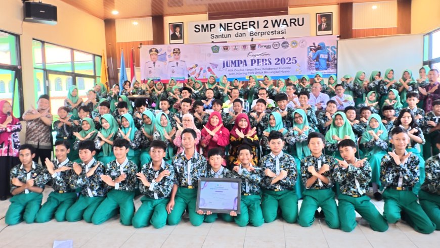 WARU - Kamis (20/11) SMP Negeri 2 Waru mengadakan kegiatan "Jumpa Pers 2025" dalam rangka kolaborasi dengan pers untuk menangkal hoaks. Kegiatan Jumpa Pers 2025 ini diikuti oleh para siswa-siswi kelas 7 dan 9 yang terpilih serta anggota jurnalistik.