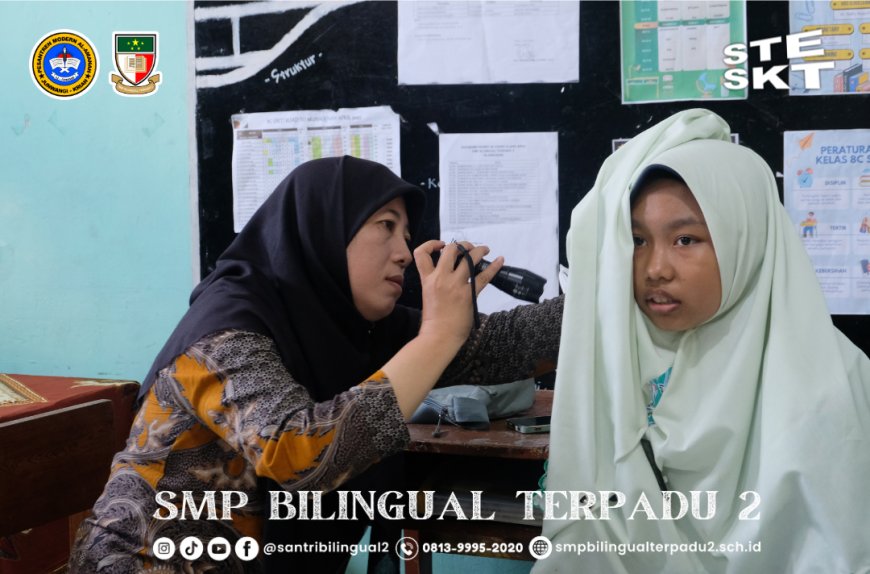 Puskesmas Krian bekerja sama dengan SMP Bilingual Terpadu 2 (Bilie) melaksanakan kegiatan skrining kesehatan bagi seluruh santri kelas 7 alam rangka menjaga kesehatan peserta didik pada Kamis, 25 September 2025, bertempat di Laboratorium IPA SMP Bilie.
