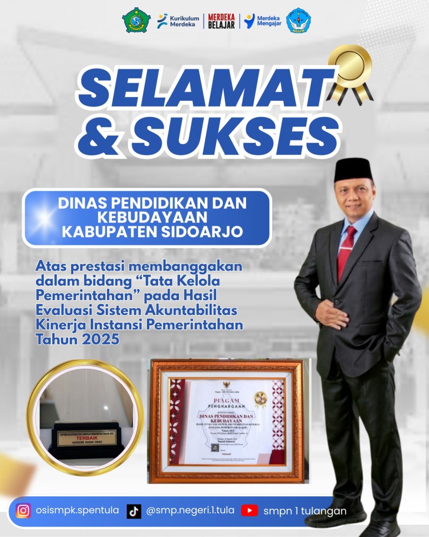 Spentula mengucapakan selamat dan sukses atas prestasi membanggakan dalam bidang "Tata Kelola Pemerintah" pada hasil Evaluasi Sistem Akntabilitas Kinerja Instansi Pemerintah Tahun 2025"