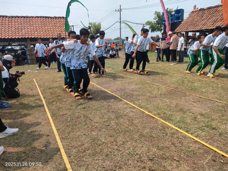 Indonesia, seperti gobak sodor, tarik tambang, egrang, dan permainan khas nusantara lainnya. Atmosfer kompetisi tampak meriah dengan dukungan para guru, siswa, orang tua, serta masyarakat setempat yang turut memenuhi area alun-alun sejak pagi hari.